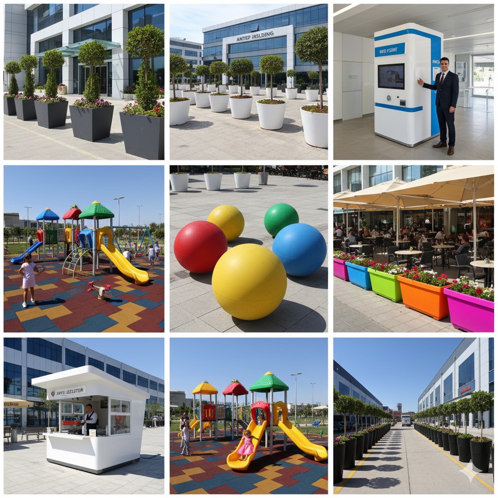 - Sanayi Bölgeleri ve Modern Yapılar İçin Çözümler: Gaziantep’in sanayi bölgelerinde yer alan fabrikaların girişleri, kurumsal kimliklerini yansıtan ürünlerle donatılabilir. Büyük boy fiberglas saksılar, fabrika girişlerinde görkemli bir duruş sergilerken, dayanıklı yapılarıyla yoğun trafiğe karşı koyar. Ayrıca, şirket kampüsleri için özel üretilen fiberglas banklar ve çöp kutuları da pratik ve uzun ömürlü çözümler sunar.